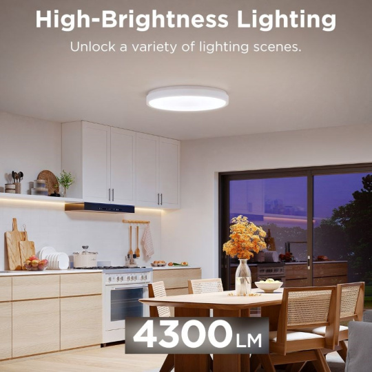 Toto stropní svítidlo nabízí mimořádný jas až 4300 lumenů bílé barvy, což z něj činí ideální volbu pro místnosti o velikosti 15–20 m2. Díky rovnoměrnému rozptylu světla zajistí dostatečné osvětlení ložnice, pracovny nebo obývacího pokoje, aniž by bylo příliš ostré. Skvělá volba pro ty, kteří chtějí spojit stylový design s praktickým výkonem.