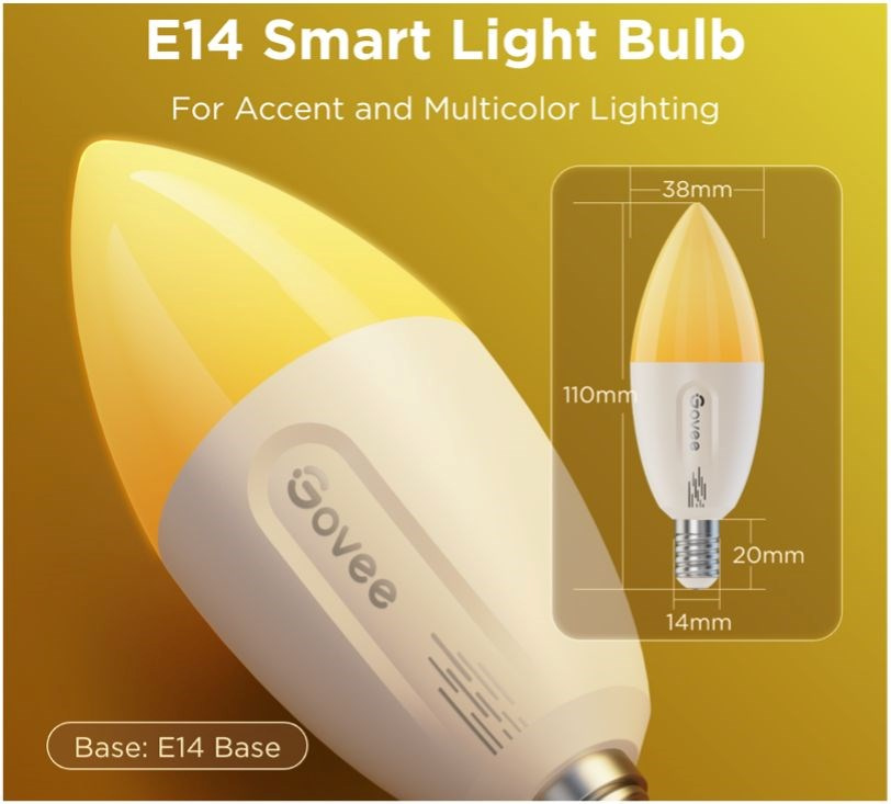 Chytré žárovky E14 Govee B600C jsou tu pro dokonalé moderní osvětlení vašeho domova. Jejich svítivost je 400 lumenů při příkonu 4,8 W. Žárovky používají technologii RGBWW, tedy 16 mil. barev a k tomu různé teploty bílé. Žárovku lze tedy používat jako dekorativní osvětlení, ale také jako hlavní zdroj bílého světla s rozmezím teploty 2700-6500 K s indexem podání barev 80 Ra a stmívatelností v rozmezí 1-100 %. To stačí na pokrytí celého dne a všech druhů aktivit jako je práce, relaxace nebo usínání a probouzení. Žárovky se díky energetické a tepelné šetrnosti nepřehřívají a vydrží tak svítit mnoho let. Ovládání je možné aplikací Govee Home, Google Home a hlasem pomocí asistentů Google, Alexa i Siri. Navíc jsou kompatibilní s Matter. Několik žárovek je možné seskupit pro pohodlnější ovládání. Aplikace nabídne mnoho přednastavených scén, které se hodí pro každou příležitost a díky mikrofonu umí žárovky i vizualizovat hudbu. Žárovky se připojují přes Bluetooth pro rychlé lokální ovládání, nebo Wi-Fi pro vzdálenou kontrolu. Díky ní můžete žárovky libovolně ovládat a časovat v případě, že nejste doma a předejít tak tomu, aby se vaše obydlí stalo cílem zlodějů.