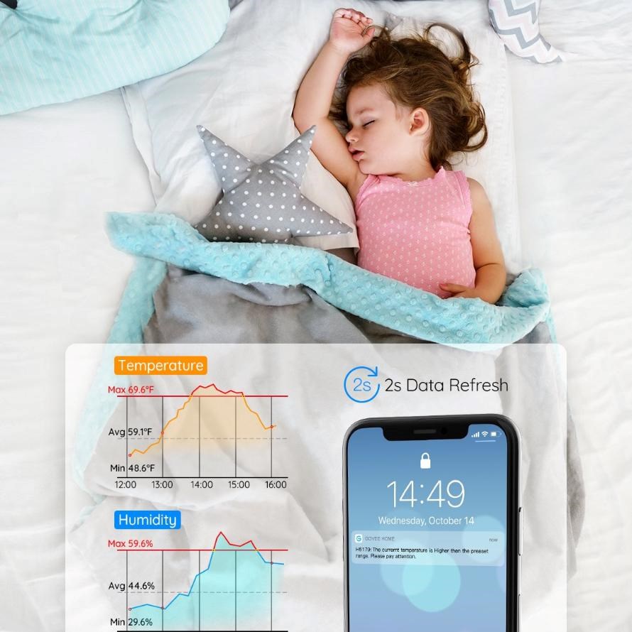 Govee Wi-Fi teploměr-vlhkoměr umožňuje přesné sledování teploty a vlhkosti v domácnosti, teráriích, inkubátorech, vinných sklepech nebo ložnici a pomáhá vytvářet zdravé a stabilní prostředí. Díky vysoce přesnému senzoru získáte spolehlivá data v reálném čase, která jsou zásadní pro komfort i ochranu citlivých prostor. Kompaktní a přenosný design umožňuje snadné umístění kamkoli bez omezení. Zařízení je ideální jak pro každodenní použití, tak pro specializované aplikace vyžadující přesnost.