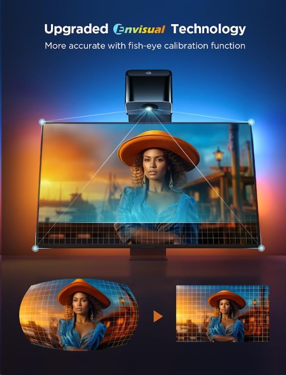Govee Backlight 3 Lite spoléhá na přesnou reprodukci barev na obrazovce pomocí kamery. Ta je nově vylepšena o korekci zkreslení, takže podsvícení přesně navazuje na barvy na obrazovce a tím vytváří imerzivní vizuální zážitek. Kamera se pro kompatibilitu se soundbary umisťuje nad televizi a počítá i s ultra tenkými modely obrazovek.