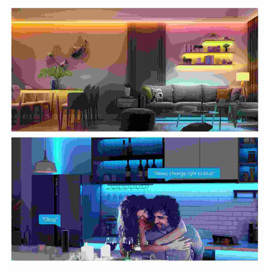 Úsporné interiérové chytré LED pásky Govee WiFi RGB SMART 5 m s životností až 50.000 hodin udělají z vašeho domu designový skvost. Můžete je použít prakticky všude - obývací pokoj, ložnice, kuchyň, pracovna atd. Díky technologii RGB umí zobrazit až 16 milionů barev, jejichž intenzitu lze nastavit od 1-100%. Vyberte si ze 7 režimů osvětlení a při poslouchaní oblíbené hudby se budou světla synchronizovat díky vestavěnému mikrofonu a vytvoří nezapomenutelný zážitek. Nebo si prostě nastavte svoje vlastní barevné kombinace v režimu DIY. Příkazy můžete zadat také hlasem přes Siri, Amazon Alexa nebo Google Assistant, přes aplikaci Govee Home na chytrém telefonu nebo tabletu nebo přes Control box. Světlo má celkovou délku 5 metrů a jeho instalace je velice jednouchá. Pomocí časovače můžete světla zapínat a vypínat automaticky podle západu a východu slunce nebo usínání a vstávaní.