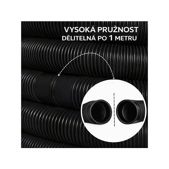 Bazénová hadice průměru 32 mm je určena k propojení filtrace s bazénem a dalším bazénovým příslušenstvím (např. vysavač, vakuová hlava, tepelné čerpadlo, solární ohřev apod.). Hadice je vcelku dlouhá 6 m, dělitelná po 1,0 m. Barva: černá Vnitřní průměr hrdla: 32 mm Délka 1 dílu: 1,0 m Materiál: HDPE + LDPE Max. teplota vody: 40 °C Balení: kartonová krabice.