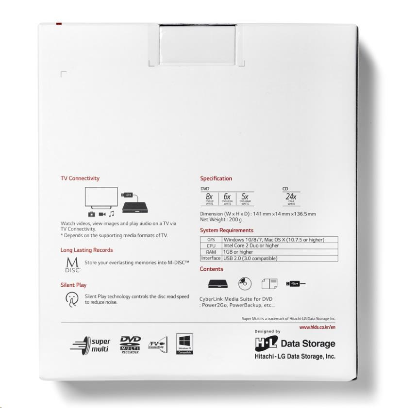 HITACHI LG - externí mechanika DVD-W/CD-RW/DVD±R/±RW/RAM GP57ES40, Slim, Silver, box+SW