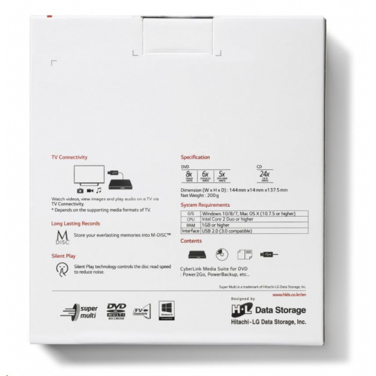 HITACHI LG - externí mechanika DVD-W/CD-RW/DVD±R/±RW/RAM GP60NB60, Slim, Black, box+SW