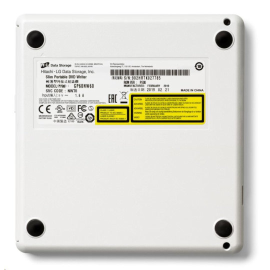 HITACHI LG - externí mechanika DVD-W/CD-RW/DVD±R/±RW/RAM GP60NW60, Slim, White, box+SW