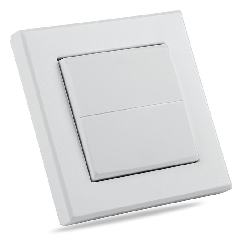 Kryt kolébkového vypínače s rámečkem (HmIP-BRU) pro programovatelné bezdrátové akční členy (HmIP-BRC2, HmIP-BROLL, HmIP-BBL, HmIP-BSM, HmIP-BDT) o velikosti 55 mm je součástí systému chytré domácnosti Homematic IP.