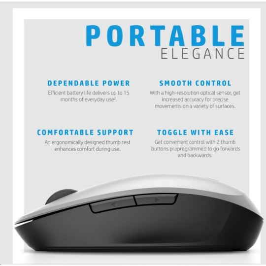 HP Dual Mode Silver Mouse 300 - bluetooth myš, připojení ke dvou PC zároveň
