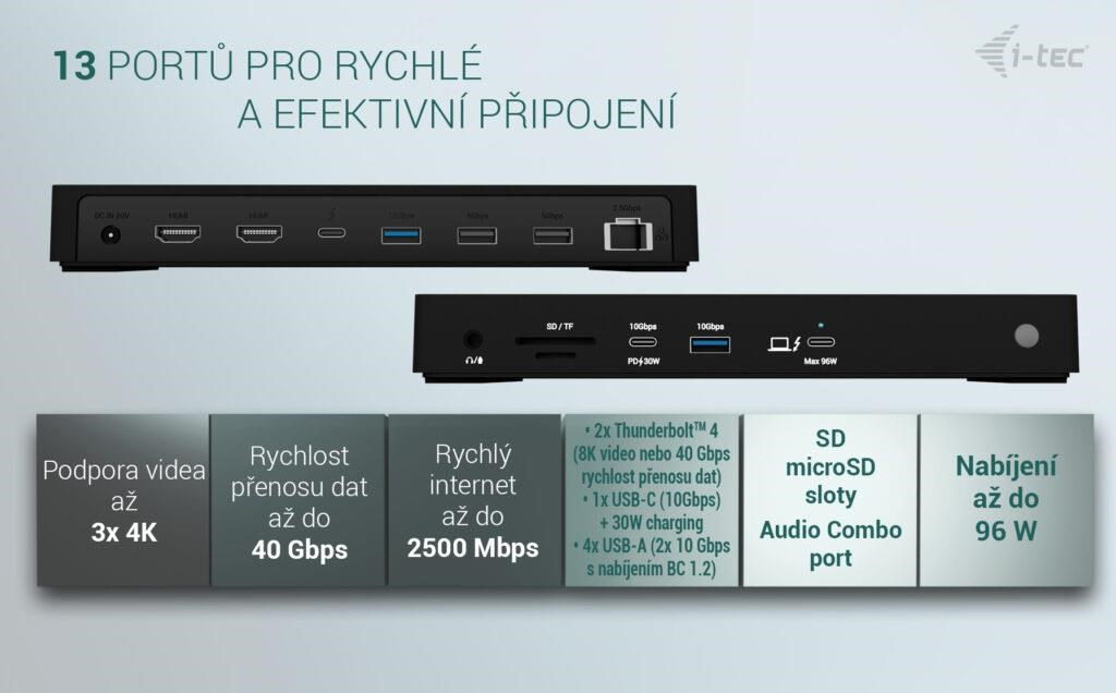 Ultra vysoký výkon, ultrarychlý přenos dat a podpora rozlišení až 8K/60 Hz. Jedna z nejvýkonnějších dokovacích stanic i-tec na trhu!
