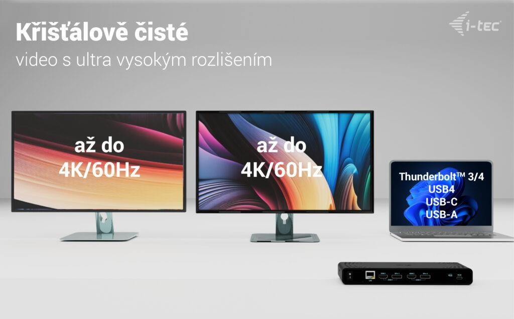 Výkonná, přitome cenově dostupná dokovací stanice, která podporuje výstup až na dva externí monitory ve vysokém rozlišení, a to až 4K/60 Hz. Dokovací stanici lze použít prakticky se všemi notebooky, protože podporuje připojení ke všem běžným portům: 3.0, USB-C, USB4 a Thunderbolt“ 3/4 a zároveň podporuje všechny běžné současné operační systémy.