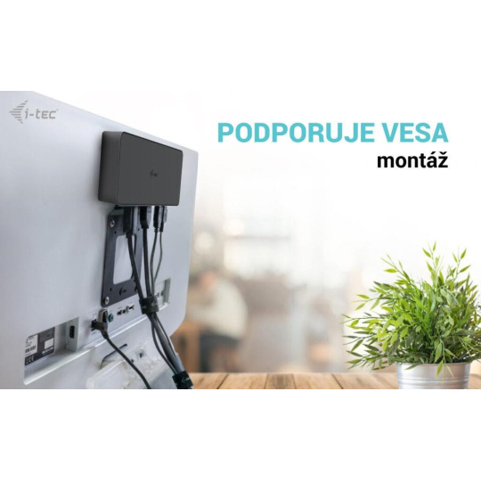 - Dokovací stanice podporuje držák VESA pro inteligentní vertikální instalaci za monitor s podporou VESA