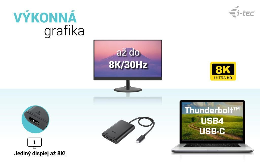 - Adaptér podporuje rozlišení až 1x 8K / 30 Hz nebo 2x 4K / 60 Hz