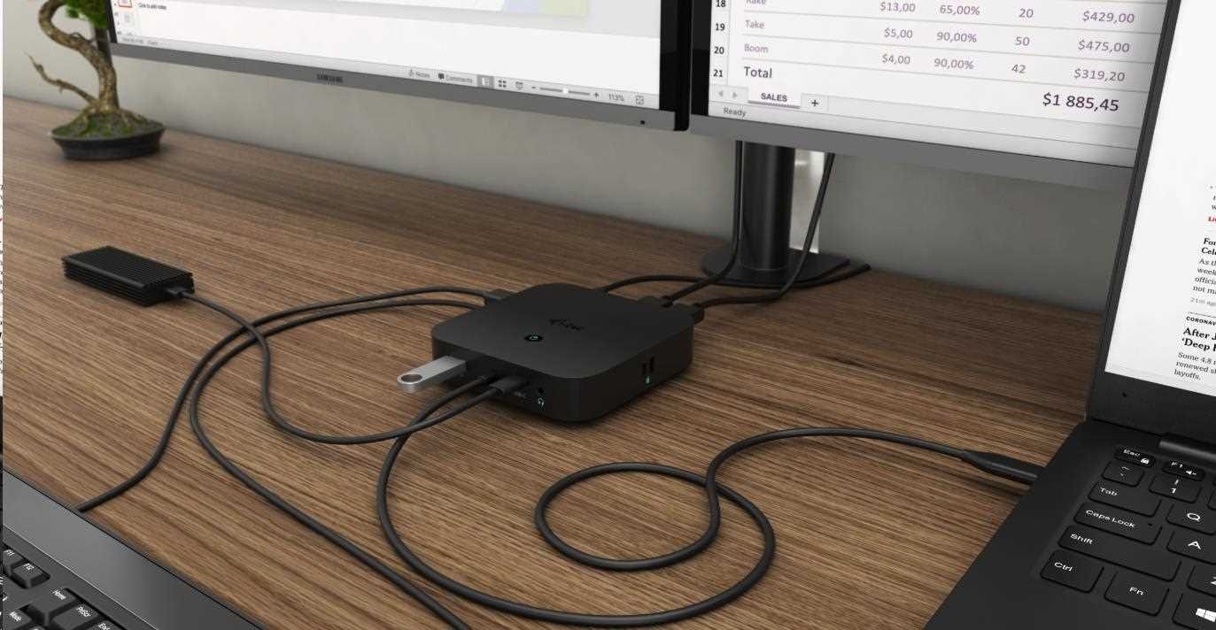 Kancelářská dokovací stanice USB-C, která podporuje až 2x externí monitor v rozlišení 4K. Stanice je kompatibilní s jakýmkoliv notebookem vybaveným portem USB-C nebo Thunderbolt 3. 6x USB port, spolehlivé a rychlé připojení do podnikové sítě díky integrovanému LAN portu a podpora instalace za monitor, to vše z této dokovací stanice dělá ideálního společníka pro profesionály. Samozřejmostí je podpora nabíjení vašeho notebooku či tabletu, a to až 100 W.