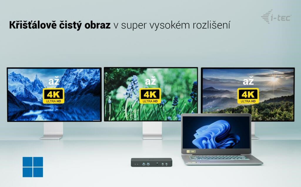 Vysoce výkonná dokovací stanice nové generace s USB-C, která podporuje připojení až tří externích monitorů v rozlišení až 4K. Lze ji použít s prakticky jakýmkoliv notebookem vybaveným porty USB-C, USB4 nebo Thunderbolt“ 3/4/5 a zároveň podporuje všechny běžné aktuální operační systémy.