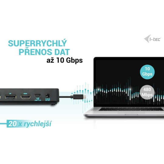 - Volitelné klonování adres MAC a automatické zálohování dat připojeného počítače (při použití softwaru i-tec Docker Pro).