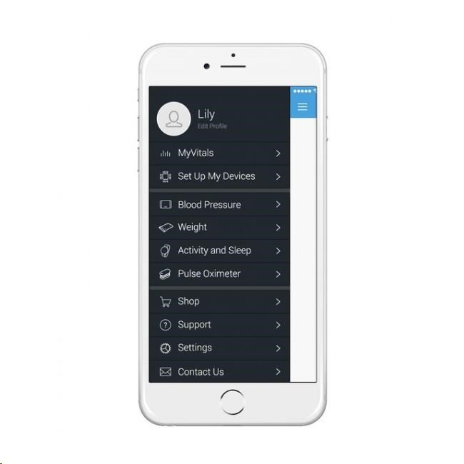 Aplikace iHealth MyVitals (iOS, Android) slouží ke sledování hodnot měřených různými přístroji značky iHealth, přehlednému zobrazování osobních zdravotních trendů, stanovování vyhodnocování fyzické aktivity a příjmů energie v potravě, ke stanovování cílů, kterých chcete v rámci své fitness kondice dosáhnout, a sledování jejich plnění apod. Sami si zvolte, zda aplikaci použijete například pouze k měření tlaku a uchovávání záznamů naměřených hodnot, nebo využijete jejích širších možností ve spojení s dalšími zařízeními. Aplikace iHealth MyVitals je dostupná zdarma.