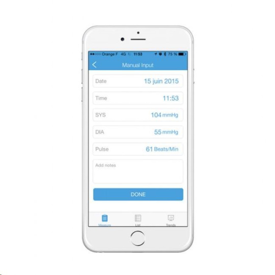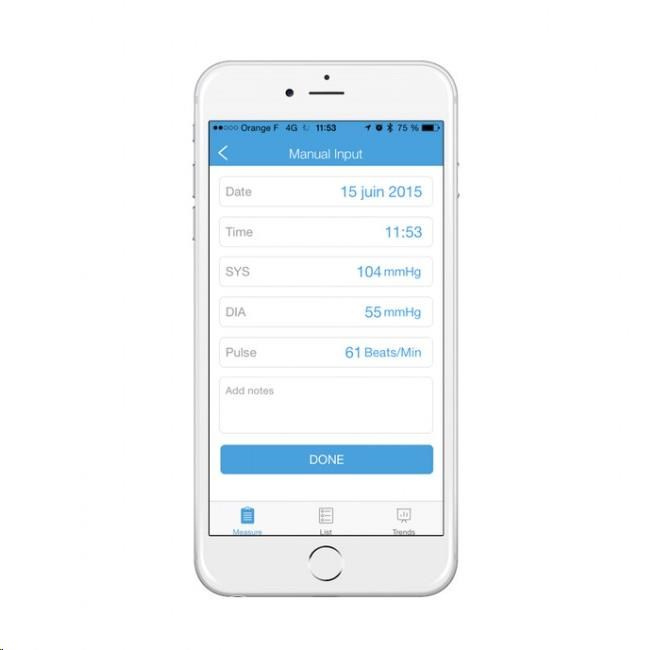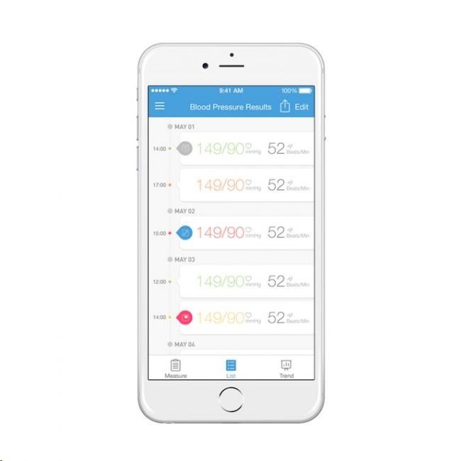 iHealth Track ale můžete bezdrátově a během vteřiny sesynchronizovat přes Bluetooth 4.0 s aplikací iHealth MyVitals ve svém chytrém telefonu a potažmo cloudu výrobce. Aplikace například záznamenává neomezenou historii a umožňuje výsledky sdílet s rodinou či lékařem.