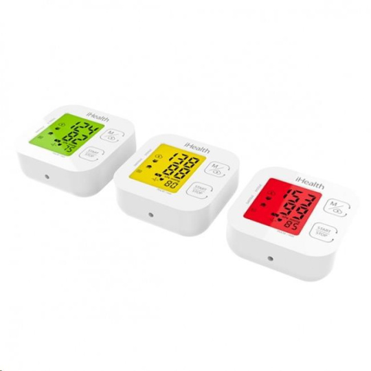 Vlastnosti a specifikace: Certifikace CE jako zdravotnické zařízení Měří systolický a diastolický krevní tlak a srdeční pulz Oscilometrická metoda měření Automatické nafouknutí manžety a provedení měření stiskem jediného tlačítka Místo měření: standardní – paže nad loktem Offline paměť pro 99 měření Možnost synchronizace s aplikací iHealth MyVitals (zdarma pro zařízení se systémem iOS a Android) Bezdrátový přenos naměřených hodnot do mobilního zařízení přes Bluetooth 4.0 Možnost ukládání, editace a prohlížení hodnot na cloudovém účtu, přístup z počítače Tlakový rozsah manžety: 0 až 300 mmHg Přesnost měření tlaku: ±3 mmHg Rozsah měřeného tlaku (systolický/diastolický): 60 až 260 / 40 až 199 mmHg Rozsah měřeného srdečního tepu: 40 až 180 úderů za minutu s přesností ±5 % Délka manžety: 22 až 42 cm Napájení: 4x AAA baterie Životnost baterií: cca 250 měření Automatické vypnutí po 1 minutě nečinnosti Rozměry přístroje (bez manžety): 98 x 98 x 46 cm Hmotnost přístroje (včetně manžety a baterií): 348 g