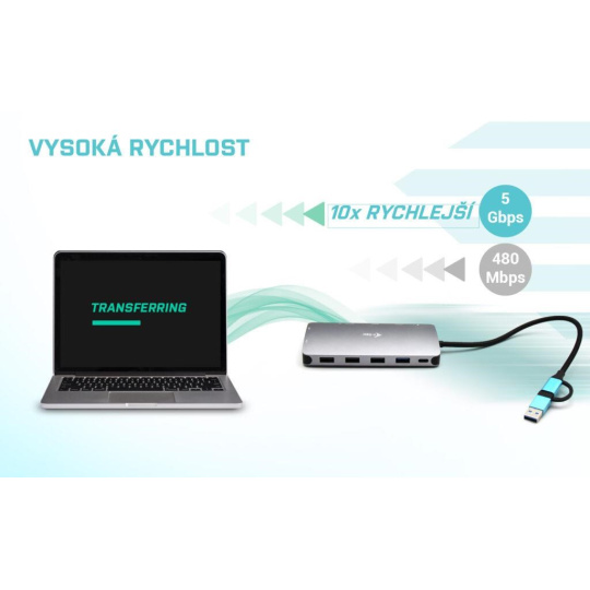 - Vysoce výkonná cestovní dokovací stanice až pro tři monitory současně