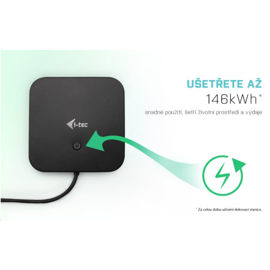Každé elektrické zařízení má minimální kontinuální spotřebu, která se v průběhu životnosti vyšplhá do desítek až stovek zbytečně spálených a zaplacených kilowattů. Naši dokovací stanici však můžete dle potřeby vypnout a tím ušetřit jak prostředí, tak i vaši peněženku.