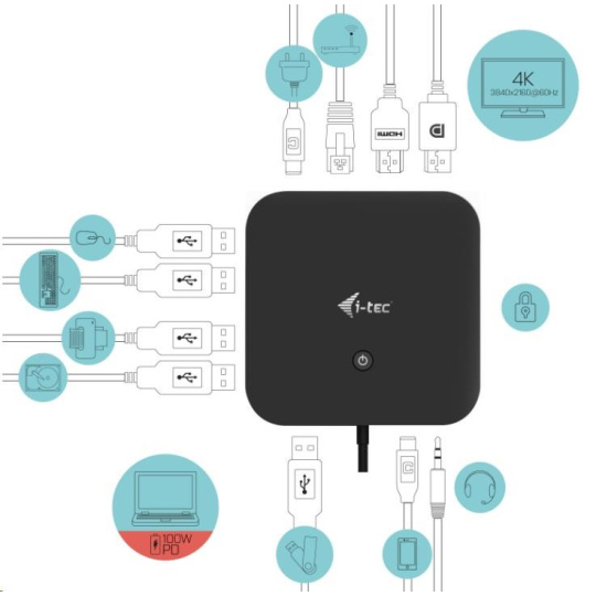 i-tec USB-C HDMI DP Docking Station, Power Delivery 100 W