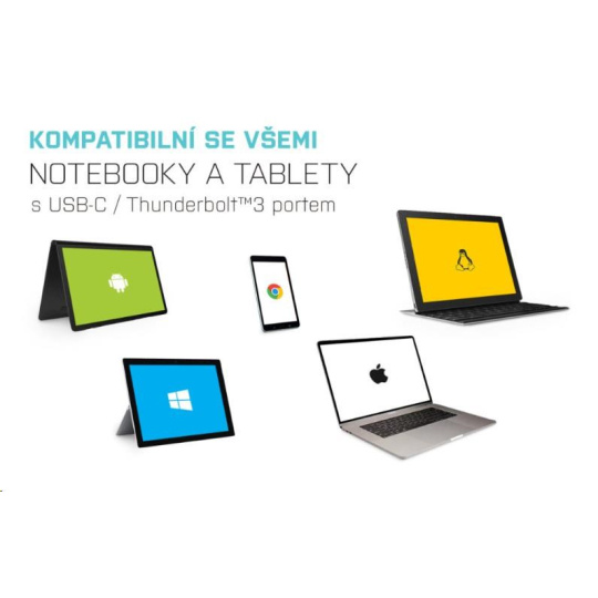Dokovací stanice je plně kompatibilní i s notebooky a tablety, vybavenými portem Thunderbolt 3.