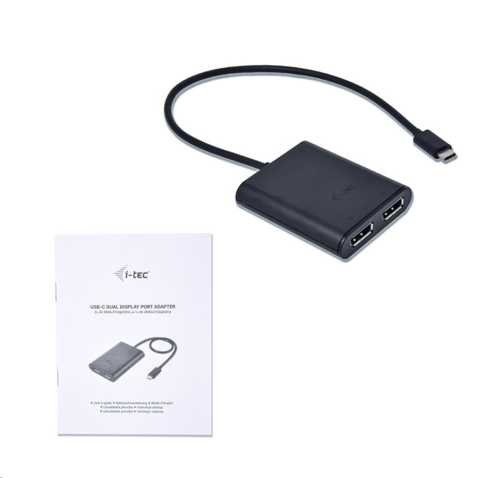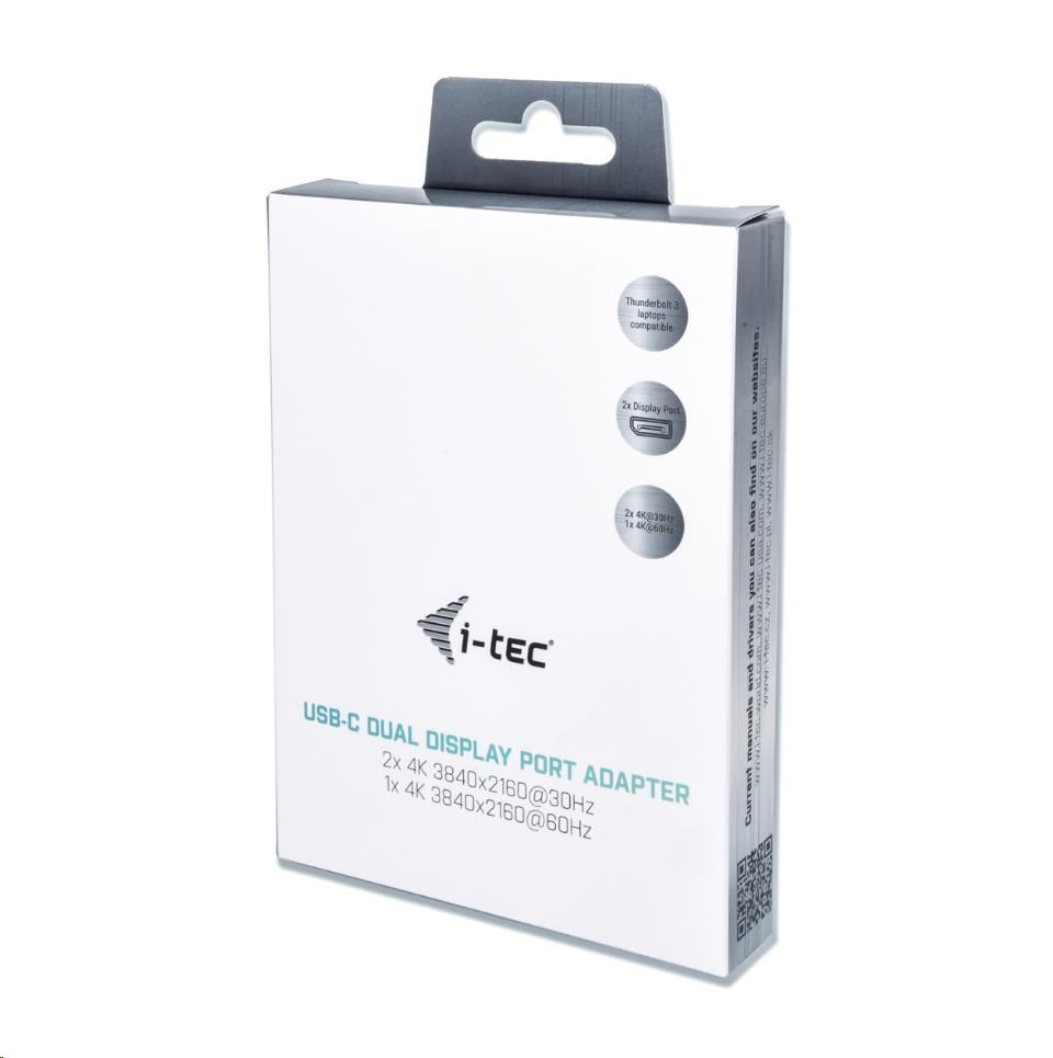 i-tec USB-C na Dual Display Port adaptér, 2x Display Port 4K Ultra HD, kompatibilní s Thunderbolt 3
