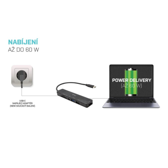 Malá dokovací stanice, která i přes své velmi kompaktní rozměry nabízí vše potřebné pro základní práci. Připojte externí monitor v rozlišení až 4K, dva USB porty poslouží pro připojení vašich periferií a čtečka SD a microSD karet pomůže s přenosem dat. Samozřejmostí je i možnost napájení vašeho notebooku, a to až do 60 W (napájecí adaptér není součástí balení).