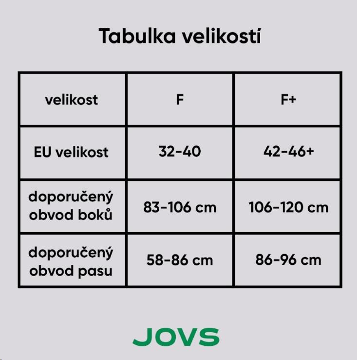 - Velikosti: F (pro obvod boků 66-85 cm), F+ (pro obvod boků 80-90 cm)