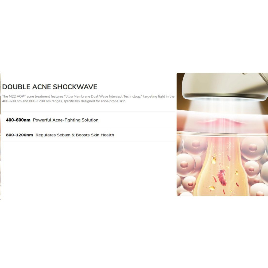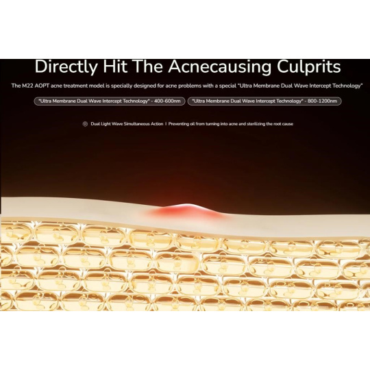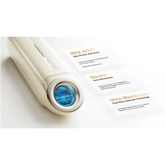 Tento inovativní přístroj využívá unikátní "světelně-biologickou" technologii pro maximální efekt. Dvojitá rázová vlna intenzivního pulzního světla proniká hluboko do pokožky, kde ničí bakterie Propionibacterium acnes a reguluje produkci mazu.