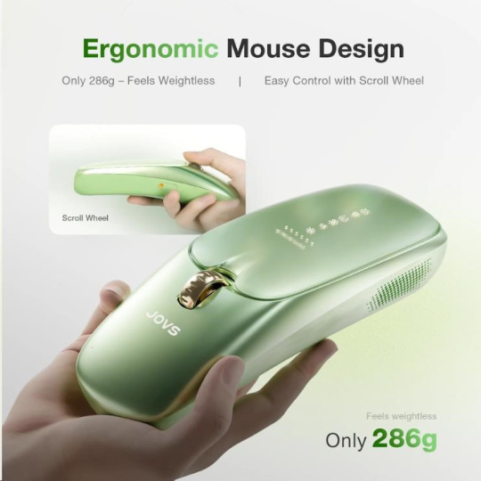 JOVS Scroll se odlišuje nejen svým výkonem, ale i jedinečným designem. Jeho tvar inspirovaný starověkým svitkem je nejen krásný, ale i dokonale ergonomický. S hmotností pouhých 286 gramů je jedním z nejlehčích a nejkompaktnějších přístrojů na trhu, což zaručuje snadnou manipulaci, skladování a ideální přenosnost na cestách.