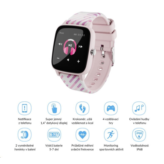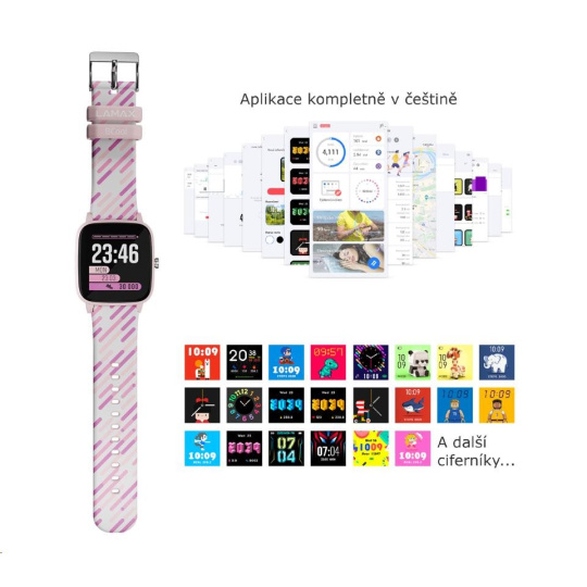 Prostředí hodinek a aplikace je kompletně v češtině, takže ovládání nebude pro dítě žádný problém. Hodinky lze přepnout do dalších jazyků a podporovat tak výuku angličtiny a dalších jazyků.