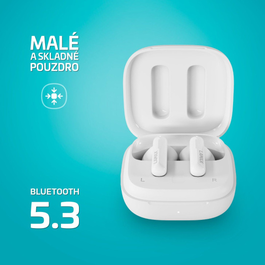 Blesk je pomalejší brácha bezdrátovýho připojení Bluetooth 5.3 a tenhle pár sluchátek ho má. Automaticky se spáruje se zařízením a už to frčí. Užívat si můžeš parádních 8 hodin na jedno nabití a dalších 34 hodin se ukrývá v pouzdru. Někdo volá? Paráda, vyzkoušíš si, jak super kvalitní mikrofon sluchátka maj. A jestli patříš mezi gamery nebo filmový maniaky, nesmí ti uniknout Herní mód s nízkou latencí. Všechno ovládáš dotykově, takže pohoda jazz.