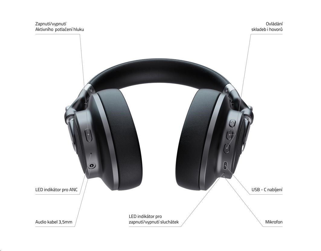 Na první pohled tě zaujmou jedinečným titanovým designem, na první dotek se ti zalíbí luxusním zpracováním a na první poslech tě přesvědčí, že sis vybral správně. Sluchátka vydrží na jedno nabití až 50 hodin (25 hodin se zapnutým ANC), takže jsou ready na týden v officu i let kolem zeměkoule. Pokud potřebuješ volný ruce, při hovorech ti pomůže zabudovaný mikrofon. A kdyby ses chtěl vrátit ke starý dobrý klasice, klidně do nich můžeš i zapojit 3,5 mm jacka.
