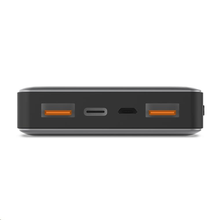 - 2× USB QC3.0 výstup + USB-C konektor pro vstup/výstup (input/output)