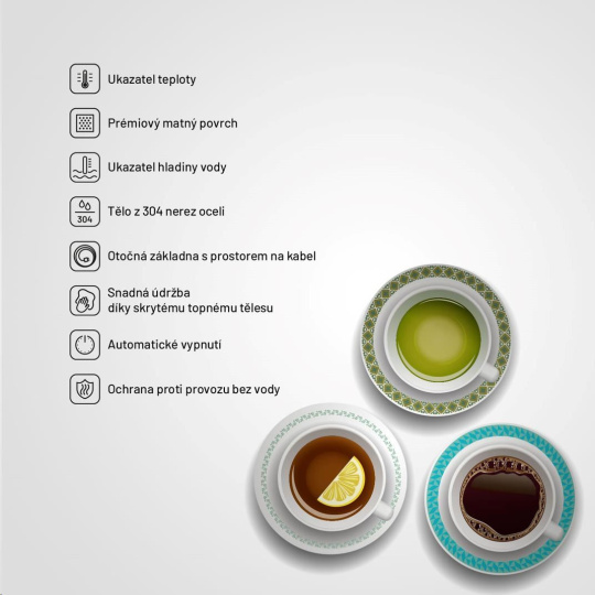 Konvice je vybavena pojistkou proti přehátí i vaření bez vody.