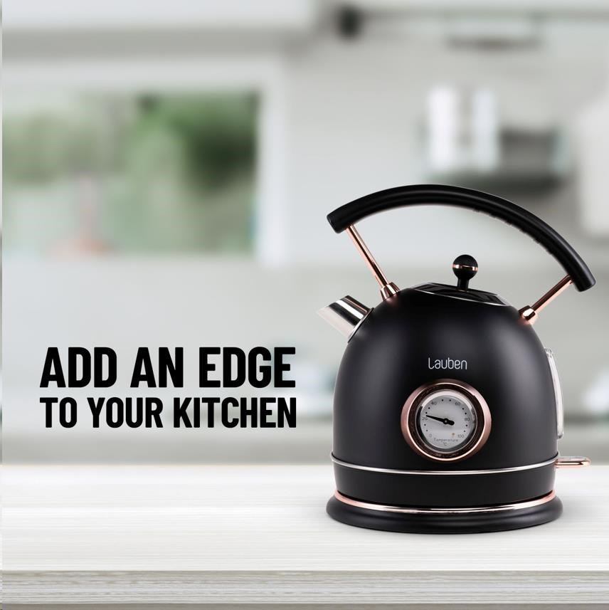 I mezi rychlovarnými konvicemi lze najít tu, která dodá vaší kuchyni punc stylu a originality. Konvice Lauben je navržena ve vkusném artdeco stylu, který se bude ve vaší kuchyni vyjímat. Tělo konvice je vyrobeno z #304 nerezové oceli a díky matnému povrchu konvice vypadá na lince luxusně. Hlavní vypínač konvice disponuje LED podsvícením.