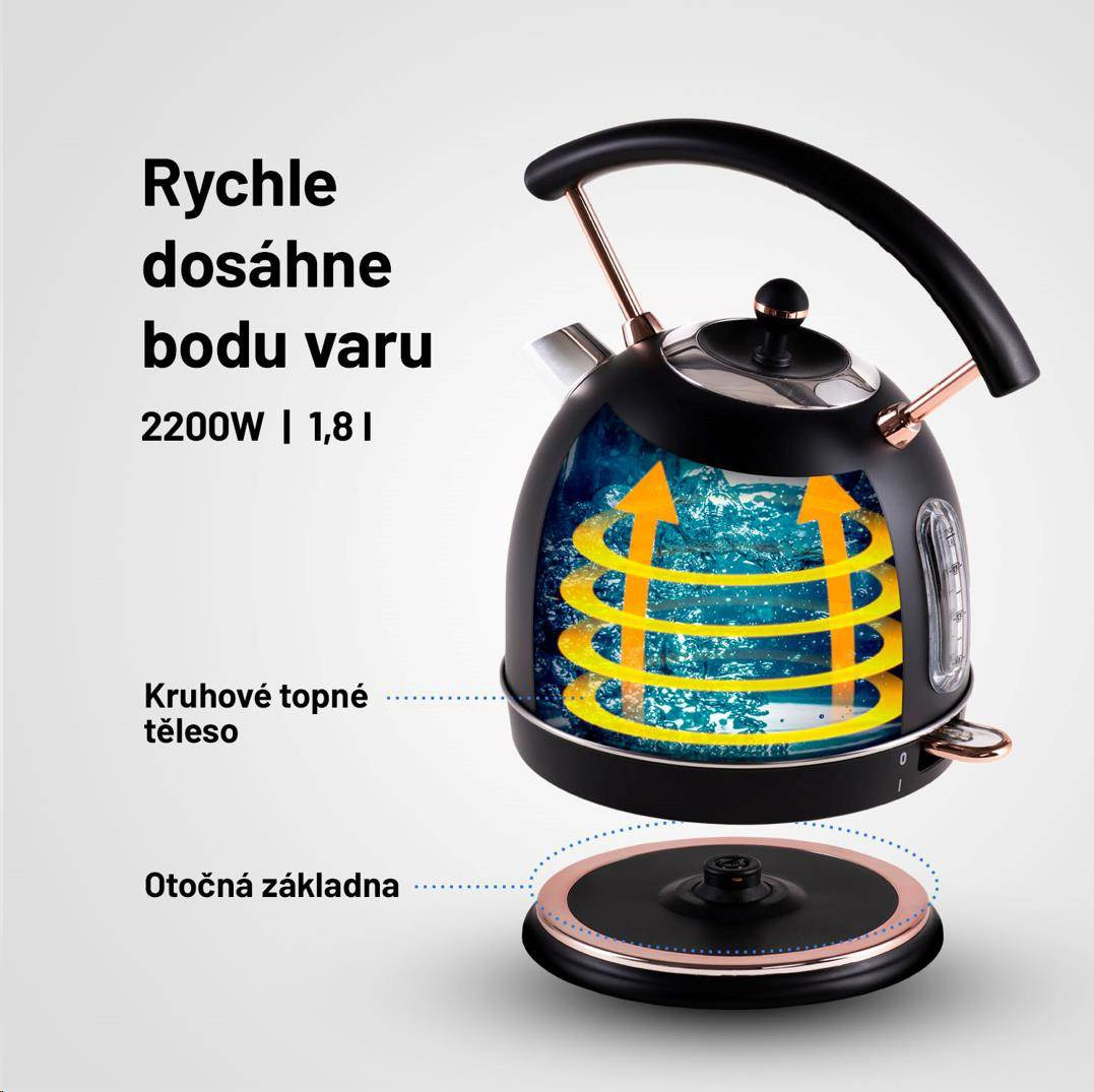 Rychlovarná konvice je jistě nepostradatelnou součástí každé kuchyně. Může být ale zároveň stylovým doplňkem, který pozvedne váš interiér na vyšší úroveň. Lauben Electric Kettle 17BC je designová rychlovarná konvice ve stylu Artdeco s prémiovým matným povrchem z #304 nerezové oceli. Údržba konvice je snadná, topné těleso je skryto, tudíž se méně zanáší a konvice se lépe čistí. Mysleli jsme i na bezpečnost, konvice má pojistku proti přehřátí i vaření bez vody. Aktuální teplotu vody můžete sledovat na teploměru na konvici. Potřebujete-li zalít zelený čaj, nemusíte čekat, až voda vychladne, ale stačí prostě včas vypnout. Díky svému designu konvice nejen dobře vypadá, ale je i praktická. Základna je otočná o 360° pro jednoduchou manipulaci a samozřejmostí je prostor pro skrytí kabelu, který jinak překáží a nevypadá hezky.
