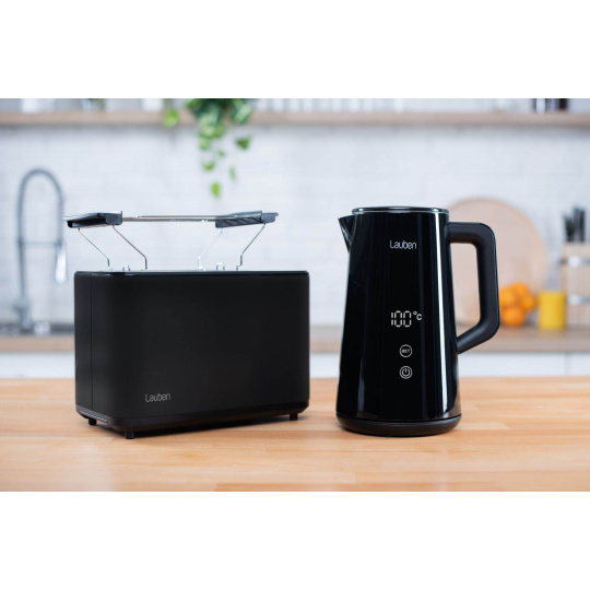 Voda přesně na míru nápojůmNepostradatelnou součástí kuchyní se stala rychlovarná konvice. I ta ale může být víc než jen užitečný domácí spotřebič. Lauben Electric Kettle 1800BC v dokonalém černém designu s velkým digitálním displejem je velmi praktická a zároveň působí jako stylový designový doplněk. Vodu v ní ohřejete přesně na požadovanou teplotu a díky přesnému termostatu a funkce Keep Warm ji udrží na stejné teplotě až po dobu 2 hodin. Ani pak jí však dvojité stěny nedovolí rychle zchladnout. Údržba konvice je snazší než kdy dřív, integrovaný filtr totiž zachytí mnohé nečistoty. Jako vždy myslíme i na bezpečnost, proto technologie Cool Touch zabraňuje popálení se o konvici a bezpečnostní pojistka přístroj ochrání proti přehřátí a vaření bez vody. Samozřejmostí je základna otočná o 360° s prostorem pro ukrytí kabelu.