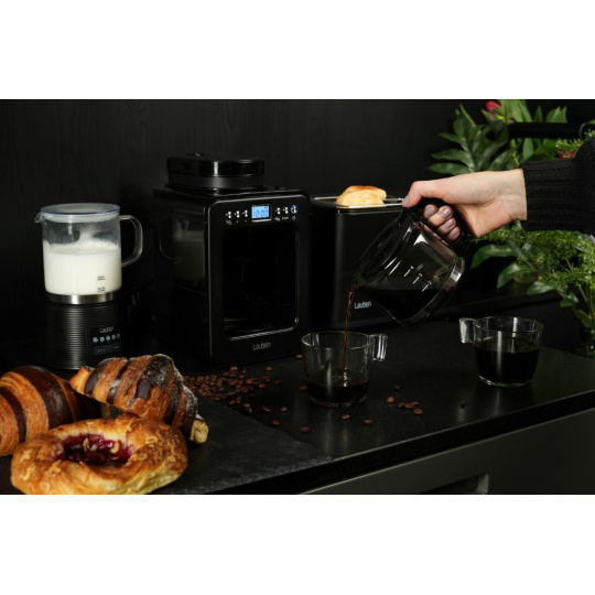 Překapávaná káva jako z kavárnyDopřejte si každý den klidnou chvilku se šálkem lahodné překapávané kávy. Kávovar Lauben Grind&Drip Coffee Maker 600BB ji připraví během chvilky z čerstvě namletých zrn díky zabudovanému mlýnku. Nepotřebujete tak další příslušenství, odpadá i přesýpání kávy z mlýnku. Ač umí připravit také kávu z již namletých zrn, čerstvě umletá chutná nejlépe. Funkce Keep Warm navíc zajistí, že si nápoj užijete vždy horký. Vše potřebné nastavíte na přehledném digitálním displeji a pak už jen čekáte, než do skleněné konvice nakape černý mok. Čekání vás ušetří funkce časovače, která zajistí, že bude káva připravena na požadovanou dobu. Díky technologii Lauben AntiDrip® navíc umožňuje nalití kávy ještě před dokončením cyklu. Bezpečnost kávovaru prémiového kompaktního designu zajišťuje funkce automatického vypnutí a technologie Cool Touch. Čas uspoří snadná údržba, k níž přispívá také omyvatelný filtr z nerezové oceli. Není třeba stále dokupovat papírové jednorázové, takže šetří vaši peněženku a rovněž životní prostředí.