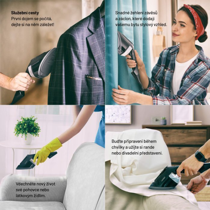Prkno a žehlička zdržují a někdy zkrátka není čas na hrdinství. Nyní můžete mít oblečení přežehlené rychlostí blesku a s minimálním úsilím. Napařovač oděvů Lauben Handheld Steam Iron 1950BC se díky kompaktním rozměrům hodí i na cesty. Technologie FastHeat® zaručuje, že je přístroj připraven k akci do 20 sekund od zapnutí. Díky technologii HorizIron® vyžehlíte vše i vodorovně, bez potřeby ramínka, a poradíte si snadno s velkými plochami. Ve spojení s dezinfekcí povrchů horkou párou je napařovač vhodný také na závěsy či čalounění, pára zneškodní bakterie a zápach. K výhodám napařovače patří keramická žehlicí plocha šetrná k choulostivým tkaninám. Pro snadnější a bezpečné skladování je přibalen teplovzdorný dustbag a k odstranění nečistot a žmolků z čalounění využijete nasazovací kartáč.