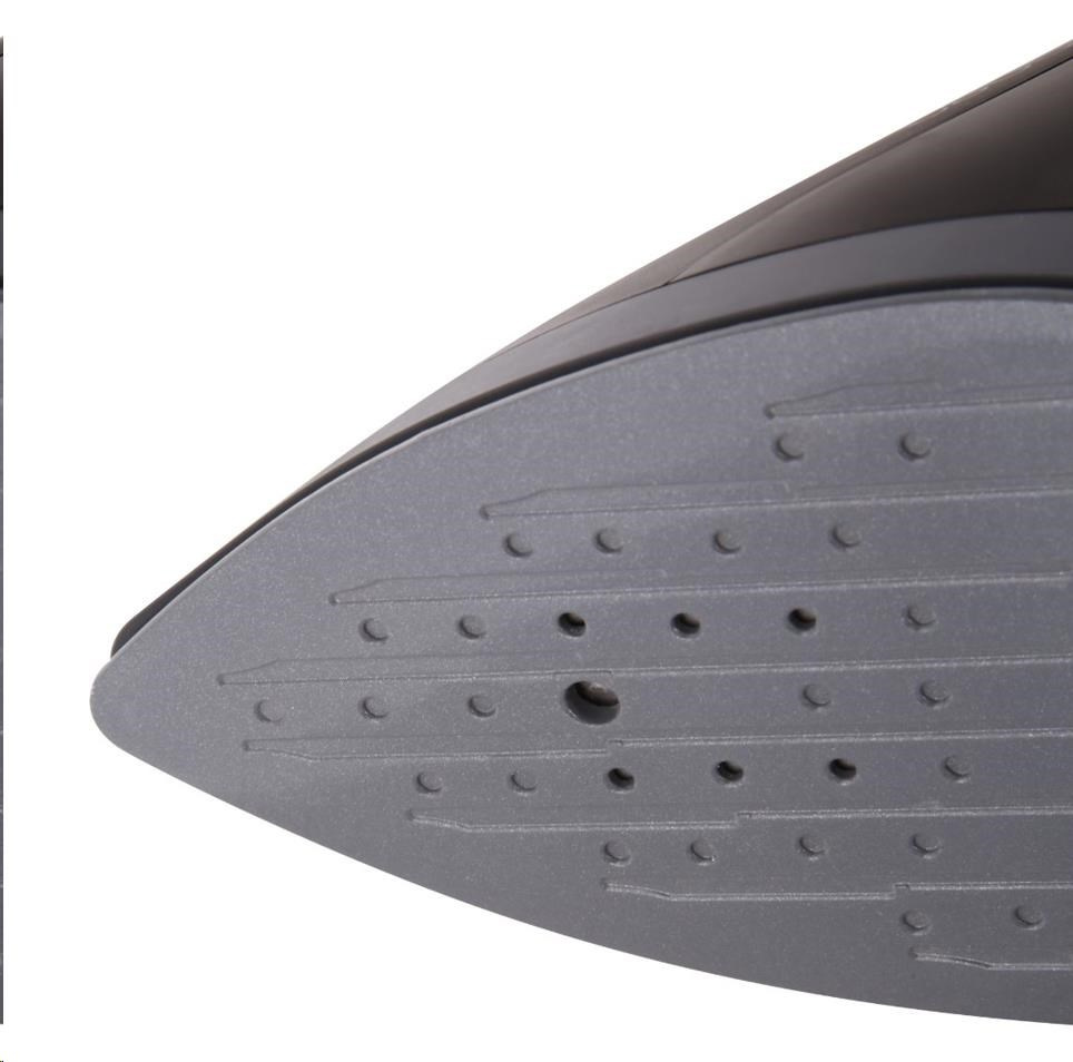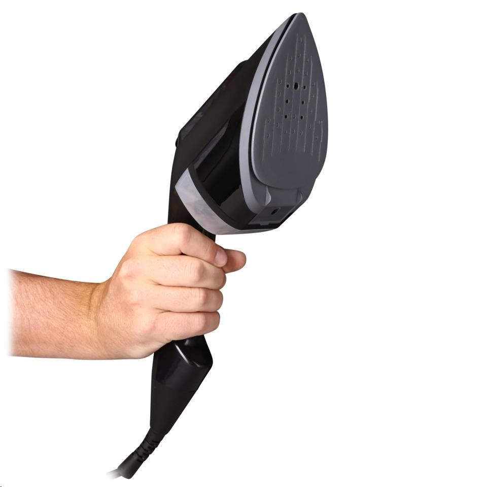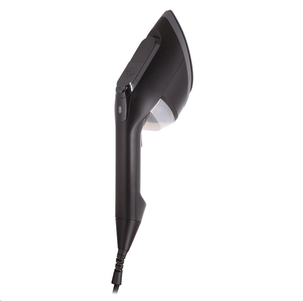 Matný černý povrch v kombinaci s keramickou žehlicí plochou do špičky vypadají trendy, ale jsou především funkční. Díky špičatému tvaru se pohodlně dostanete například k límečku či mezi knoflíky.
