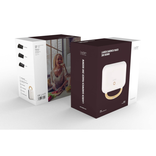 Křupavá snídaně, svačina i rychlá večeřeNemáte zrovna čas na přípravu teplé večeře nebo vydatné snídaně? S toastovačem Lauben zvládnete obojí během pár minut. Klasickými toasty se šunkou a sýrem potěšíte každé dítě, rozhodně u nich ale nemusíte skončit. Sendvičovač Lauben si díky 3 sadám plotýnek poradí i se snídaňovou vaflí nebo grilováním masa. Nahřejete ho během chvilky a jídlo budete mít hotové dříve, než se vám podaří svolat všechny ke stolu. Potěší vás i snadná údržba a skladování. Sendvičovač vertikálně uložíte do kuchyňské skříňky a vyměnitelné plotýnky lze jednoduše otřít hladkou stranou houbičky na nádobí. Díky integrovaným protiskluzovým nožkám zůstane během přípravy jídla na místě. Mysleli jsme i na bezpečný provoz. Cool Touch držadlo zajistí, že se nikdy nespálíte a provoz indikuje LED kontrolka na povrchu přístroje. Přidanou hodnotou je prémiový design značky Lauben. Trendy off white provedení s dřevěným dekorem se totiž skvěle hodí do každé kuchyně.