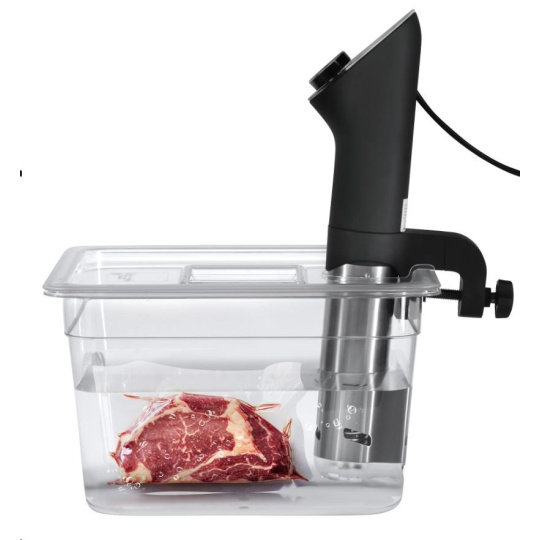 Lauben Sous Vide Container je užitečným pomocníkem při vaření sous vide. Díky jeho použití nebudete muset doplňovat vodu do vodní lázně ani při několikahodinové přípravě. Pokud necháte sous vide vařič běžet přes noc, nemusíte se bát půlnočních alarmů kvůli vypařené vodě. Kromě toho, že poklička zabraňuje vypařování vody, pomáhá také lépe udržovat teplotu a zabraňuje tepelným ztrátám. Oproti vaření sous vide v klasickém hrnci, budou zavakuované sáčky s jídlem lépe držet na místě a nebudou plavat nad hladinu, což napomůže rovnoměrné úpravě.