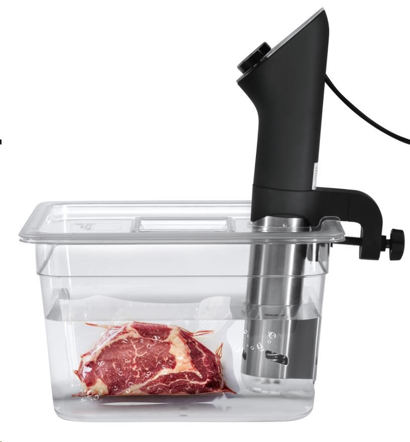 Poklice má výřez na sous vide vařič, do kterého přesně pasuje Lauben Sous Vide Stick, chybu ale neuděláte ani pokud vlastníte vařič jiný. Do otvoru se vejde většina vařičů na trhu.