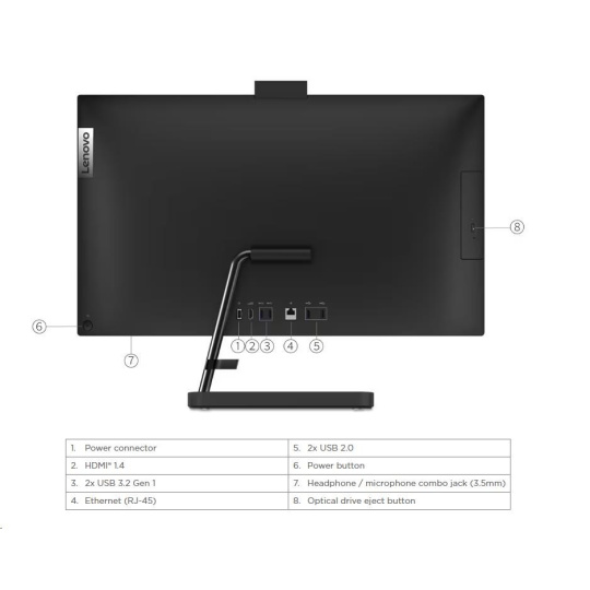 | Standardní porty | 2x USB 2.0 2x USB 3.2 Gen 1 1x HDMI® 1.4 1x Ethernet (RJ-45) 1x napájecí konektor |