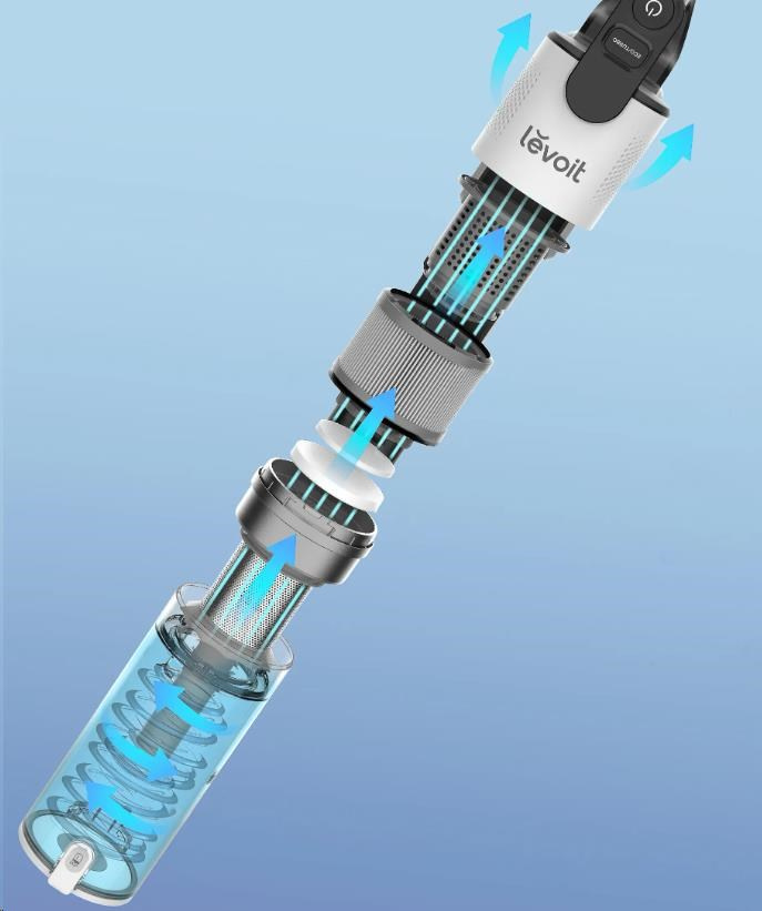 Vysavač Levoit je díky pečlivě vybraným materiálům a komponentům velmi lehký. Manipulace s ním je pohodlná i jednou rukou což oceníte při vysávání pavučin ze stropu nebo při vysávání prachu ze žaluzií.