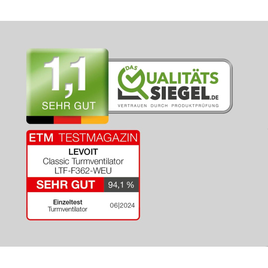 V nezávislém testu německého testovacího portálu dosáhl ventilátoru F362 vysokého hodnocení a známky GUT. V testu byl pochválený vysoký výkon ventilátoru, dosah proudu vzduchu a velmi nízká spotřeba elektrické energie.
