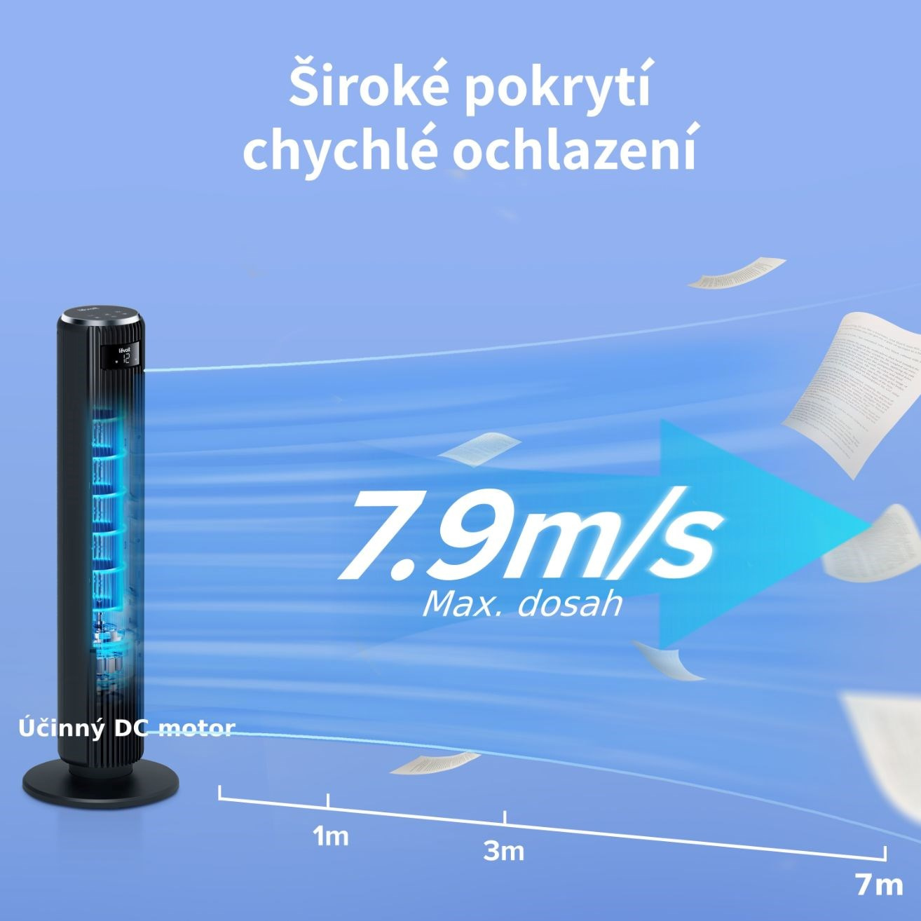 - Rychlost proudění vzduchu až 7,9 m/s – dosah až 7 metrů