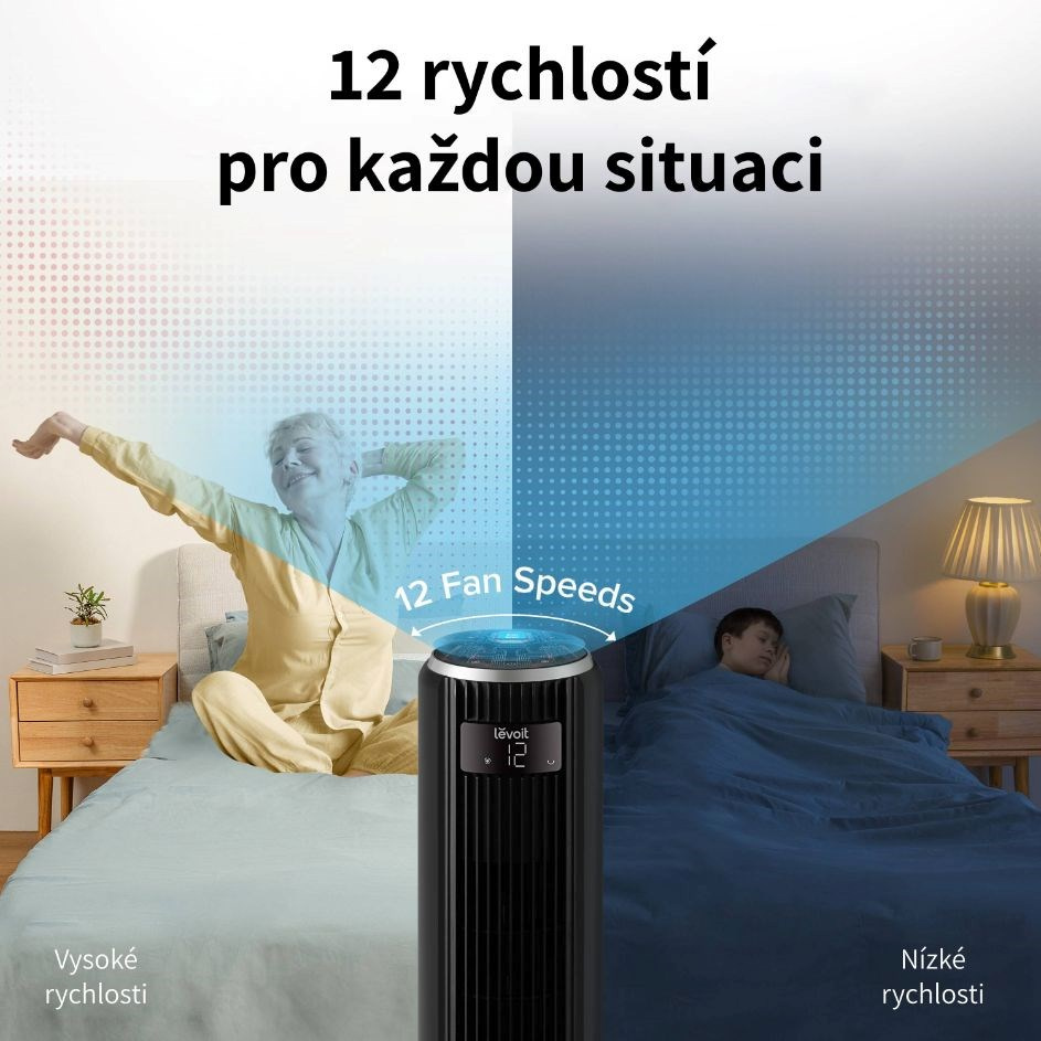 Ventilátor Levoit 362 je navržený jako komplexní řešení ochlazení vašeho obydlí bez nákladnosti a energetické náročnosti dedikované klimatizační jednotky. Ventilátor má 12 rychlosti a jeho bezkartáčový motor zajistí velmi tichý chod. Rozpětí hlučnosti je od téměř neslyšných 25 dB do stále nízkých 48 dB při maximálním výkonu. Ventilátor má automatickou oscilaci v rozsahu 90° a ručně u něj lze nastavit směr proudění vzduchu ve vertikálním směru. Ovládání ventilátoru je jednoduché a intuitivní a k dispozici je i dálkový ovladač, který se při nepoužívání dá bezpečně uložit do těla ventilátoru a zamezit tak jeho ztrátě. Speciálně navržený rotor ventilátoru nabídne velmi silný proud vzduchu s rychlostí 7,9 m/s a dosah proudu až 7 metrů při příkonu pouhých 26 W.