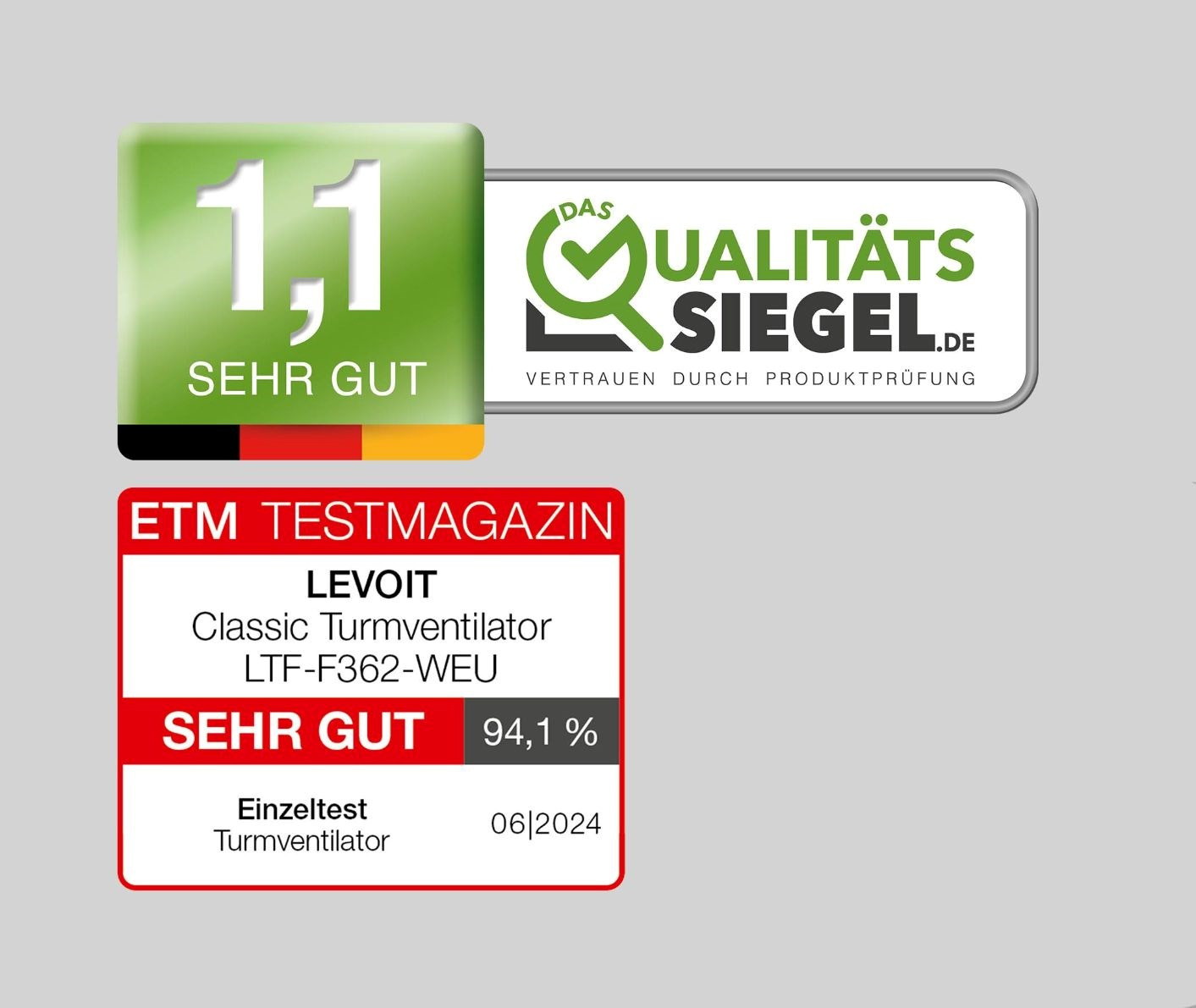 V nezávislém testu německého testovacího portálu dosáhl ventilátoru F362 vysokého hodnocení a známky GUT. V testu byl pochválený vysoký výkon ventilátoru, dosah proudu vzduchu a velmi nízká spotřeba elektrické energie.